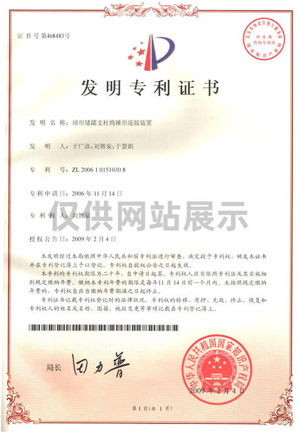 球形儲(chǔ)罐支柱搗錘形連接裝置
