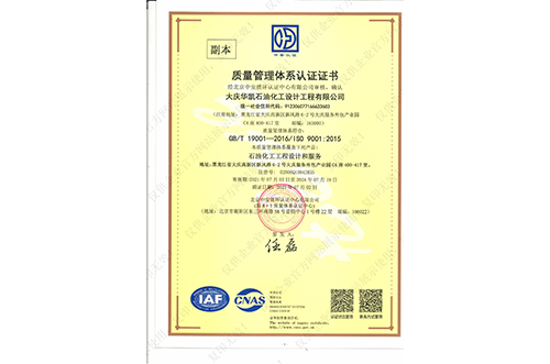質(zhì)量管理體系證書
