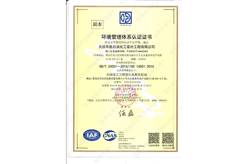 環(huán)境管理體系認(rèn)證證書